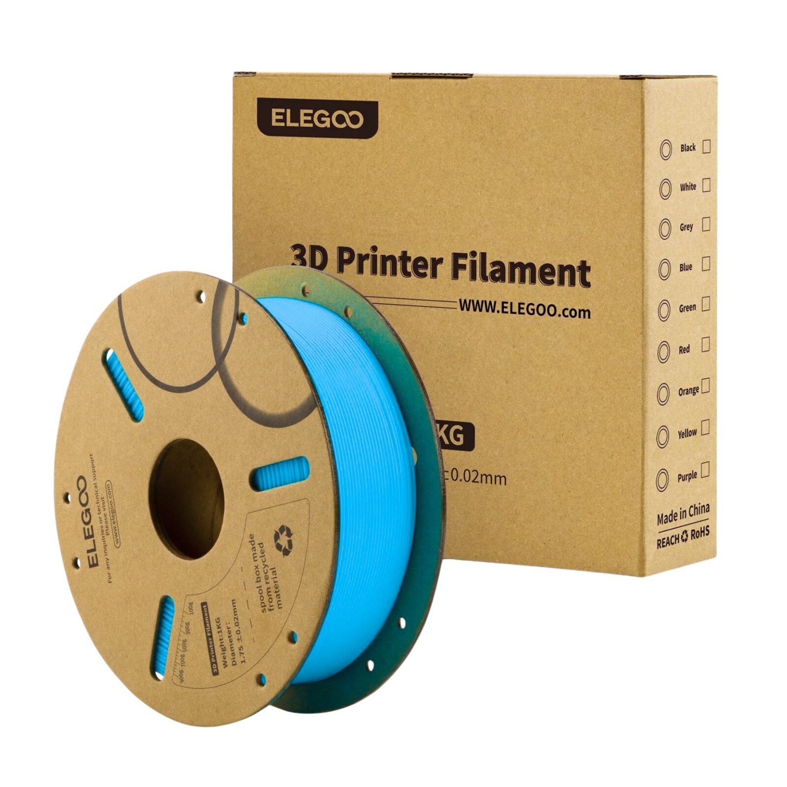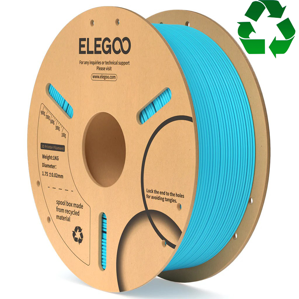 Le PLA Elegoo bleu clair est un filament 3D écoresponsable conçu à base de matériaux organiques (acide polylactique). Ce bioplastique aux couleurs variées est un PLA standard compatible avec l’ensemble des imprimantes FDM (dépôt de filament). Il est conditionné sur des bobines en carton rigide pour limiter les déchets difficiles à recycler.