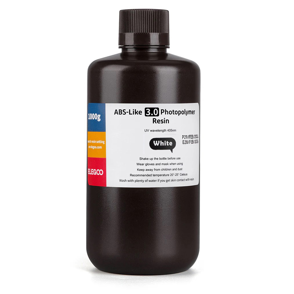 La résine ABS-like Elegoo blanche est une résine photopolymère conçue pour l’impression 3D SLA (Stéréolithographie). C’est un consommable facile à imprimer compatible avec l’ensemble des imprimantes LCD / MSLA / DLP.